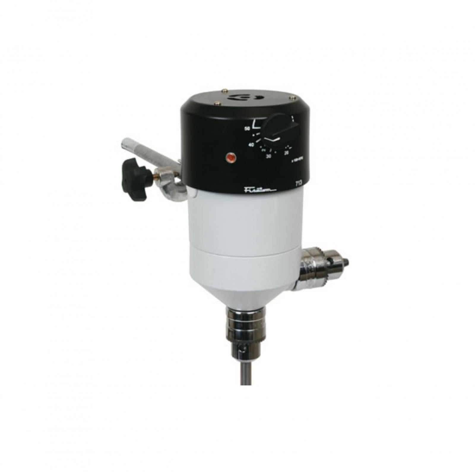 • Agitador mecânico modelo 713 para produtos semi-viscosos, versátil, com dois eixos de acionamento , um de alta rotação para agitar líquidos com viscosidade máxima de até 10.000 mPas (120 a 5.000 r/min.) e o outro de alto torque para líquidos de até 100.000 mPas (10 a 280 r/min.).
